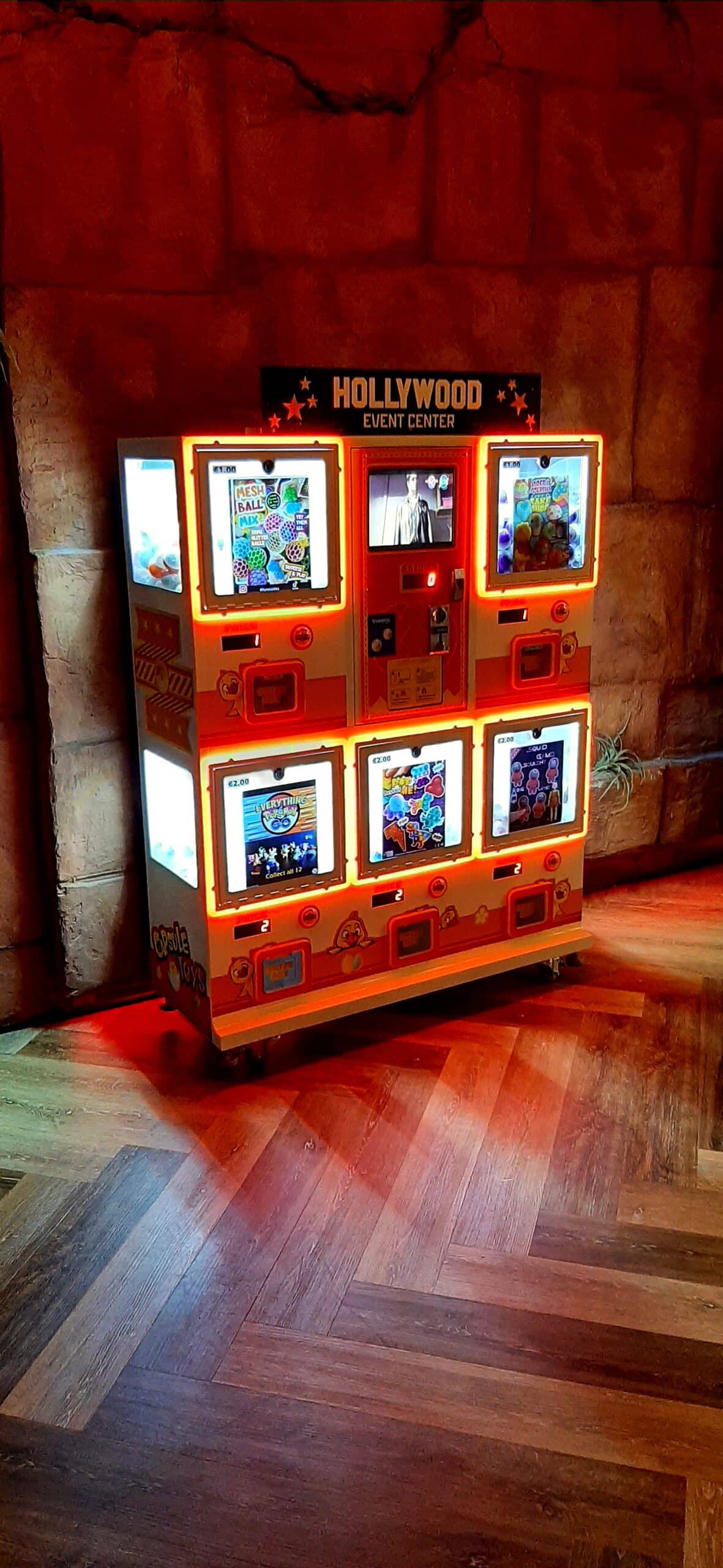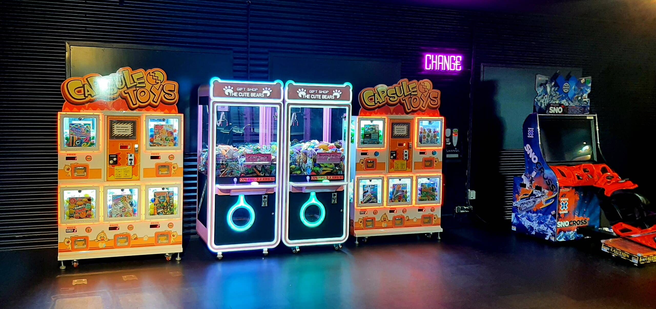 Interactive arcade-style claw machines, customizable with candy, plush toys, or gadgets.